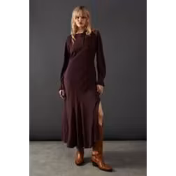 Warehouse Women's Viscose Twill Tie Shoulder Circle Tier Hem Midi Dress in Chocolate | Size: 8