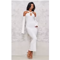 PrettyLittleThing Soft Knit Strappy Cut Out Maxi Dress - Cream