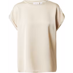 Vila satin front t-shirt with turn up sleeve in sand-Neutral - 42