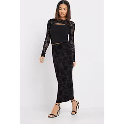 Pixiegirl Petite Women's Black Velvet Rose Detailed Skirt Size 8