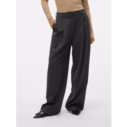 Vero Moda Troian Mid Waist Trousers - Grey Pinstripe
