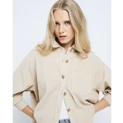 River Island Corduroy Long Sleeve Cropped Shirt - Beige