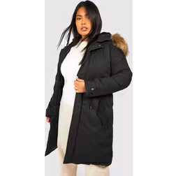 boohoo Womens Plus Faux Fur Trim Parka Coat - Black