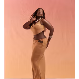 ASOS Curve Co-Ord Slinky Cut Maxi Skirt - Sand/Neutral