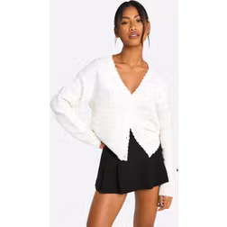 Womens Soft Knitted Pointelle Cardigan - White - S, White