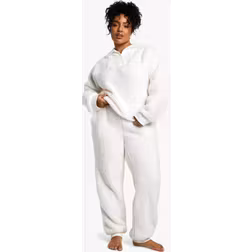 Womens Plus Rib Fleece Half Zip And Jogger Lounge Set - White - 20, White