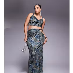 ASOS Curve Co-Ord Slinky Cut Maxi Skirt - Blue Print/Multi