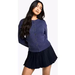 boohoo Womens Crew Neck Fine Gauge Micro Cardigan - Navy