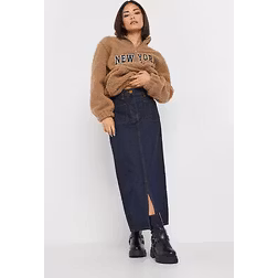 Pixiegirl Petite Dark Blue Pocket Patch Denim Skirt 16 Pixiegirl | Petite Women's Midaxi Skirts