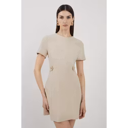 Compact Stretch Essential Waist Tab Detail Tailored Mini Dress - Beige