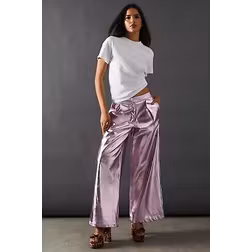 Warehouse Women's Metallic Wide Leg Trouser in Pink | Size: 6