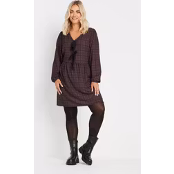 Yours Plus Size Check Bow Front Mini Dress - Burgundy Red
