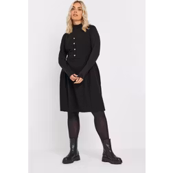 Yours Curve Black Button Front Textured Pinafore Dress, Women's Curve & Plus Size, Yours - 16