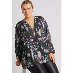 Yours London Plus Size Black Abstract Print Pleated Blouse Size 18