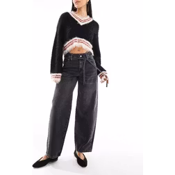 Wide Leg Jeans with Drawstring - Black Denim - W25 L32