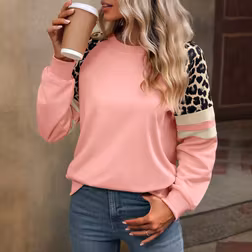 SHEIN Leopard Print Raglan Sleeve Sweatshirt,Ladies Spring/Fall Casual Long Sleeve Round Neck Regular Fit Regular Baby Pink Raglan Sleeve Pullovers Women Ho