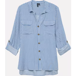 Striped Long Sleeve Blouse - Blue Striped/White - XS