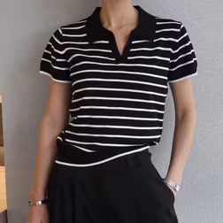 DAZY Collared Striped Short Sleeve Sweater