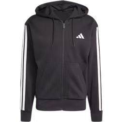 adidas Sportswear Men's Essential 3-Stripe Full Zip Fleece Hoodie - Black/White, Black/White, Size L, Men