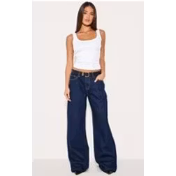 PrettyLittleThing Low Rise Wide Leg Jeans - Dark Indigo