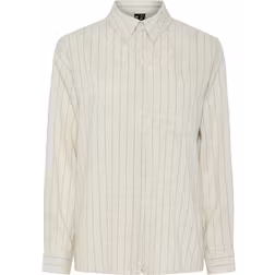 Pieces Linen Touch Shirt Co-Ord - Birch Cream/Black Stripe
