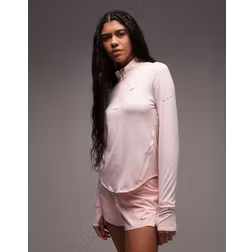 Nike Running Swift Dri-FIT Half Zip Long Sleeved Top - Baby Pink/Grey