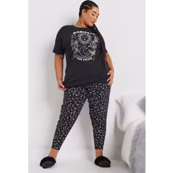 Yours Plus Size Navy Blue 'Manifest' Star Print Cuffed Pyjama Set Size 14-16