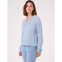 Kaffe Ditte Moonstruck Print V-Neck Blouse - Mid Blue