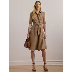 Lauren Ralph Lauren Tie-front Linen Shirtdress Woman Midi dress Light brown Size 8 Linen - Beige