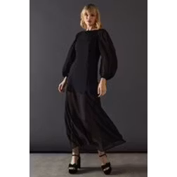 Warehouse Womens Chiffon Long Sleeve Maxi Dress - Black