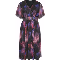 Yours London Curve Abstract Metallic Print Midi Dress - Black