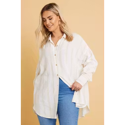 Yours Curve Natural Brown Stripe Linen Shirt, Women's Curve & Plus Size, Yours - 14
