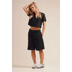 PixieGirl Petite Linen Bermuda Shorts - Black