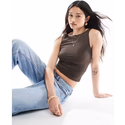 Stradivarius STR Slash Neck Sculpt Tank Top - Brown