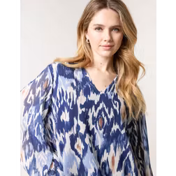 Blue Vanilla V Neck Watercolour Print Blouse - Navy