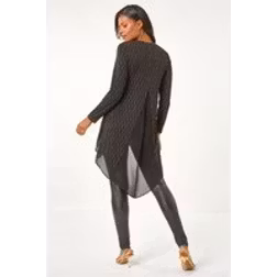Metallic Print Chiffon Hem Stretch Top - Gold - 10