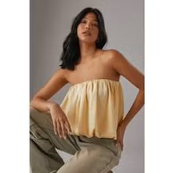 Warehouse Women's Satin Bubble Bandeau Bodysuit in Butter | Size: 12