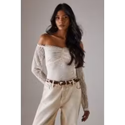 Warehouse Womens Lace Bardot Bow Detail Bodysuit - Cream