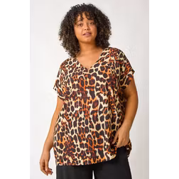 Roman Women's Curve Animal Print Woven Top in Natural | Size: 16
