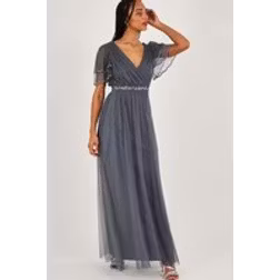 Monsoon Isla Spot Mesh Maxi Dress - Blue