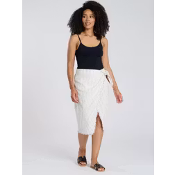 South Beach Women's Off White Linen Look Striped Wrap Skirt New Look - UK 12