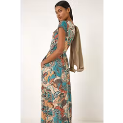 Roman Paisley Print Short Sleeve Midi Dress - Light Blue