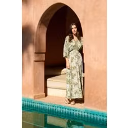 Embellished V Front & Back Maxi Dress - S/M / KHAKI