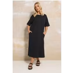 Yours Curve Black Oversized Pocket Detail Midi Dress, Women's Curve & Plus Size, Yours - 16