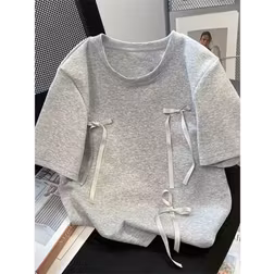 SHEIN Women Crew Neck 3D Bow T-Shirt - Casual Lightweight Tops Suitable For All Seasons
