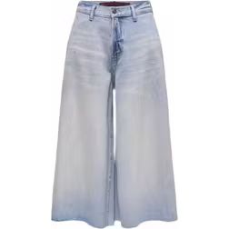 Only La High Waist Wide Leg Denim Shorts - Blue/Light Blue Denim
