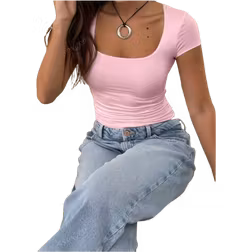 SHEIN Women Square Neck Going Out Crop Tops Short Sleeve T Shirts Summer Cute Clothes Basics Tees