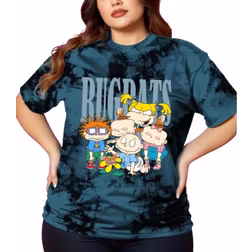Shein Nick 90s X Plus Size Summer Casual Tie-Dye Cartoon Portrait Pattern Short Sleeve T-shirt - White