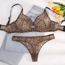 Lingerie Set, Leopard, Material: Elastane/Lycra/Spandex, Stretch