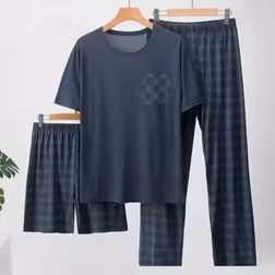 SHEIN 3pcs/Set Men's Summer Lightweight Pajama Set, Short Sleeve Tee And Shorts/Long Pants, Plaid Loungewear Set